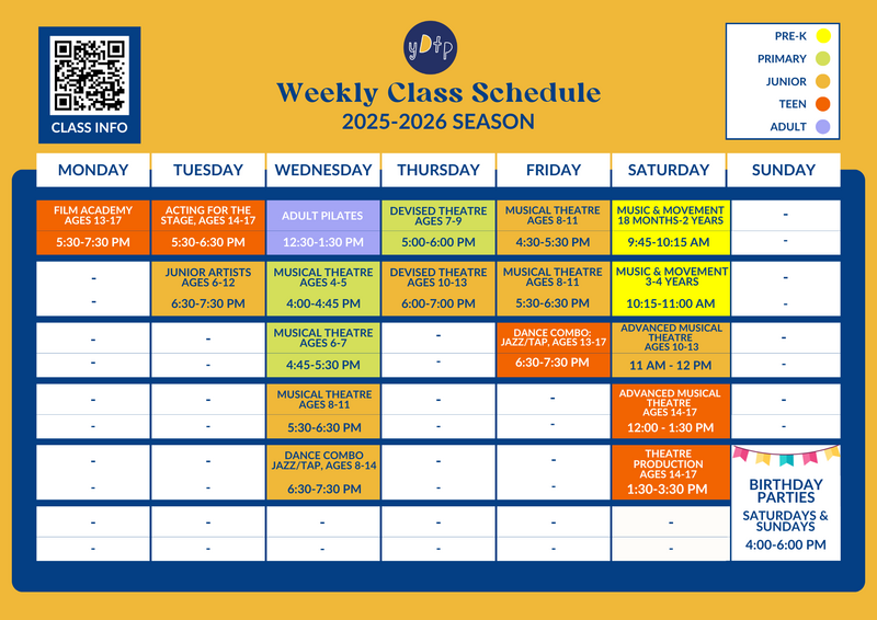 Registration for 2025-26 classes is now open. To register, create a profile on our Parent Portal.